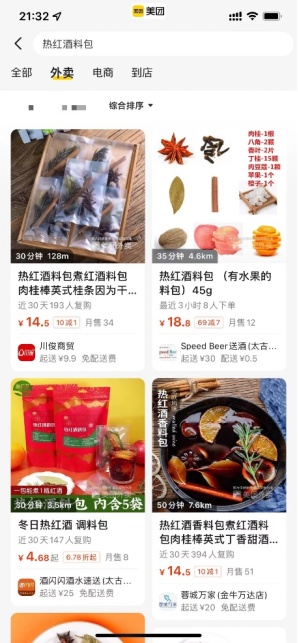 “在家煮热红酒更有氛围感,而且可以自己控制甜度,我一般还会放些喜欢的水果一起煮。”北京朝阳区的一位消费者表示,“现在外卖买什么都很方便,主要是送的快,适合我这种不会计划性囤货的人。”